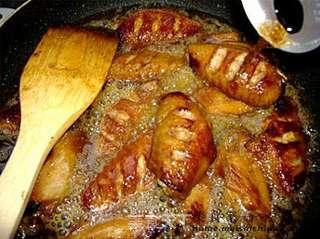 1. 锅中倒入足够的油,油温升至6成热时,将腌制好的鸡翅放入锅中炸至金黄。